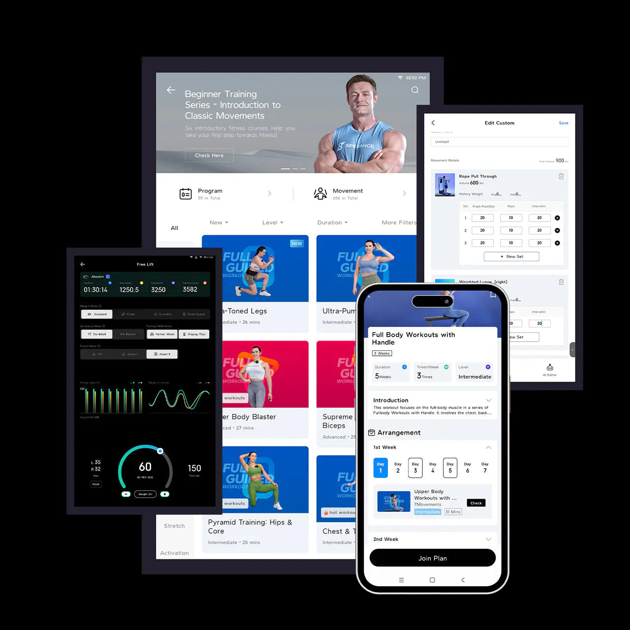 - Plus de 60 plans de remise en forme intelligents et programmés